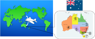 【7州】 @ニューサウスウェールズ州(NSW) Aビクトリア州(VIC) Bクイーンズランド州(QLD) C西オーストラリア州(WA) D南オーストラリア州(SA) Eノーザンテリトリー(NT) Fタスマニア州(TAS 【特別区】 Gキャンベラ(ACT) |