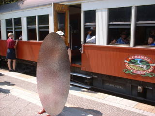 | サトウキビ畑もあり南国風景 | 渓谷を走るキュランダ゙鉄道 | ||