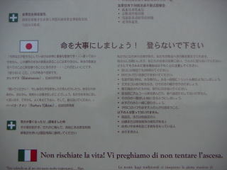 | 登り口に掲示された看板 (登らないで下さいという文字) |