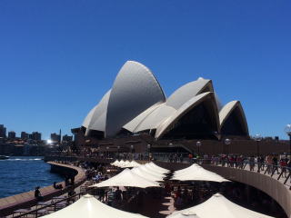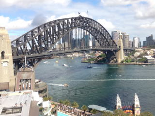 とあるお方のお家から、シドニー中心の眺め。橋桁でオペラハウスが隠れているが、う、美しい。今だに家見つからず。。。
