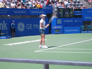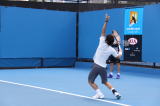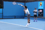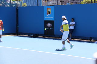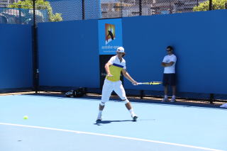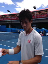 2014 年全米オープンでの準優勝とグランドスラム制覇が注目されています。日本選手が世界ランキング5位までくるとはつい数年前までは考えられないことでした。身長も他選手と比較すると小柄ながら非常にパワフルなショットを生み出しています。特徴的なのが、ストロークで珠を打つ手前で一旦スイングが止まるように見えるため、その後どちらに打つのかが相手からは分かりにくくなる点です。優勝争いに面している選手はとかくナーバス的になりがちだと思いますが、彼はファンへのサービスもすばらしいです。練習終了後、多数のファンへのサインに積極的に応じていました。