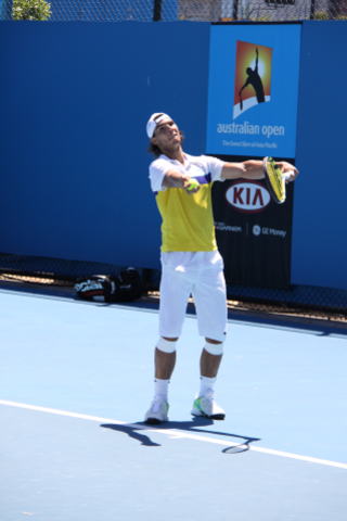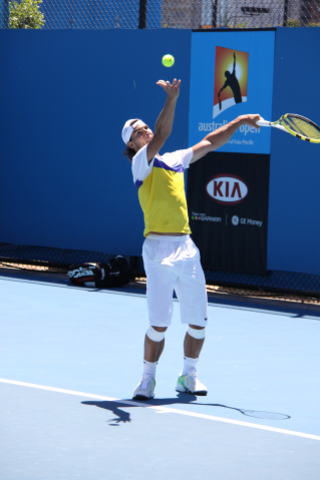 スペインの闘牛のごとくパワーで圧倒するテニスは迫力があります。彼のトップスピンと体力はクレーコートでプレーするために生まれてきたようなものです。あのほりの深い顔立ち、筋肉もりもりで、まるで獣のようです。彼に睨み付けられたひるんでしまいそうです。Rogerになかなか勝てなかった頃は、練習中とてもナーバスでファンサービスも今一でした。昨今は王者の意識もでてきて、プロとしてのファンサービスもでてきました。あの打ち方、体にふたんがありそうであり、最近怪我にみまわれているようです。でも、まだ若いので今後も活躍が続きそうです。
