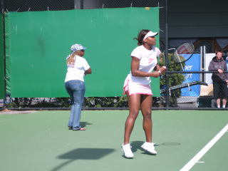テレビで見ると大きいですが、実物も大きいです。他の女子プロの練習を見ていても、私でもラリーはできるかなと感じますが、彼女のストローク、サーブはとても打ち返せる気がしません。男子並みにすごいです。また、この体にして運動量もすごいです。見た目はちょっと怖いですが、勝ったときのインタビューでの笑顔を見ていると、内心はやさしい人かもと思ってしまいます。それほどプレーには迫力があるということです。姉妹そろって試合にでていることもあり、離婚した両親も試合会場で見かけます。家族の絆がきっとテニスでつながっているんですね。