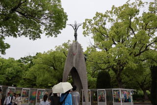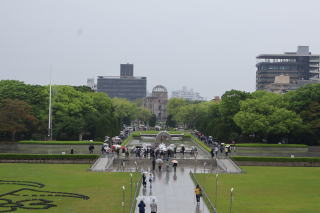 朝から1日中雨であった。広島市内観光に出かけた。早々に、Carpと書かれたバスを発見、ここは広島だと思わせる光景に出会えた。路面電車に乗り、約20分くらいで原爆ドームに到着。外壁のみの建物にしばし沈黙。平和公園にて、原爆の子の像(千羽鶴の塔)で祈りを捧げ公園を広島平和記念資料館を訪れる。前回来たときは、見学者もそれほどでもなく、うす暗い資料室を巡り、心が痛み、出るころには心が凄く重たい気持ちになっていた。今回は、やはりゴールデンウィーク刊行者および特に院バンド観光者の凄い人数で、資料館も渋滞しており、流れに沿いせせくさとまわらざるをえなかった。雨が降る中、広島城へと向かう。県庁など館長通りを過ぎ、奥に立派な天守閣が見えた。公園を横切り天守閣に到着。雨の中で、そそえ建つ天守閣は立派な佇まい。中に入り、各階の展示を見ながら最上階へ。広島の街並みを見ることが出来た。今日もお好み焼きを堪能したく、別な店に入った。カウンター席にて鉄板前で美味しくいただいた。もみじ饅頭の販売機を発見、さすが広島。