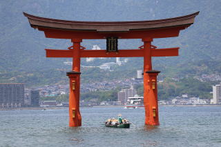 ![]() 大鳥居をくぐる船 |