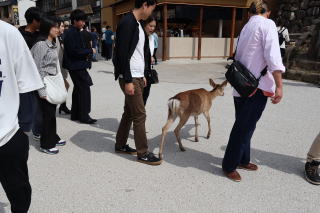 早朝7:15発の羽田便、広島空港、バス、広島駅、JRそしてフェリーにて11時過ぎには宮島に着いた。10分くらいのフェリーだが、直ぐに大鳥居が見え感動。野生の鹿がお出迎え。厳島神社までの道のりは両脇に並ぶお店がたくさん。あちこちに「もみじ饅頭」のお店。揚げもみじ饅頭なるものもあった。ゴールデンウィークとインバウンド観光客で大混雑。参拝も長蛇の列。厳かがあり、きれいな神社で平安風土が漂っている。平清盛が信仰をよせ、ゆかりがあるとのこと。海に浮かぶ大鳥居は美しく日本情緒をくすぐる。。船でくぐることが可能だが、干潮時には歩いていける。丁度お昼時となり、あちこちに見える穴子飯の看板に誘われ、こちらも長蛇の列に並ぶ。穴子飯と焼きカキを堪能。宿泊先の広島駅のホテルまで戻り、晩食は広島お好み焼き。駅ビルの食堂街に数件のお好み屋さんを発見。どの店も長蛇の列であった。1時間くらいは並んだろうか。でも美味しかった。長い1日そして、よく並んだ日であった。
