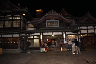 やってきました、「坊ちゃん」の道後温泉。本館は公衆浴場であるが立派な建物。「千と千尋の神隠し」のモデル館。狭い階段や迷子になりそうな館内、そのものだ。入浴には4つのコースがあり、入れる浴室、休憩室の利用、浴衣やタオルの貸出しなどに区別あり。高い方の浴槽は大理石と豪華である。2階・3階には休憩室もあり、お茶・菓子ありでゆっくりくつろげる。ただし、1時間の時間制限あり。日曜の夜だったせいか、お客も少ない。浴衣から着替えようと着替え場所を係りのおばちゃんに尋ねたら、お客がいないので、ここ休憩室でいいよだって。だだっ広い畳部屋で、お客も来るかもしれないが(係りのおばちゃんは居たが)、パンツ一丁で着替えだ。ちなみに、女性には着替え室が用意されており、男性は風呂の脱衣所を使うようだ。案内係のおばちゃんによる館内ガイドもあり、皇族の浴室も説明付きで拝見。この案内係りのおばちゃんの説明なかなか面白い。皇室の浴槽は使われることがなくなり、これから修繕に入り、修繕後は一般の方が入浴できるかもとのことであった。名前は忘れたが、浴槽は特別な石でできており、すべらないような工夫がしてあるとのこと。温泉で体もくつろぎ、少々遠いビジネスホテルへ。松山市街から10km離れた「フリーディズイン横河原」。駅横にあるが寂しい駅舎で、周りに夕飯食べる所なし。近くに愛媛大学の医学部が見えた。道後温泉の華やかの後でもあり、夜着いたせいかもしれないが、一人旅、黄昏てしまう。明日の朝食は松山でうどん食べようと、今日の晩飯は酎ハイとせんべいだ。今日は、350km位ドライブしたかな。