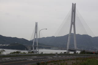 次に向かった先は、楽しみの1つのしまなみ海道だ。タオルで有名な今治を抜け、瀬戸内海横断。瀬戸内に点在する島を結ぶ橋。あいにく天気が悪かったが壮大だ。橋の両脇に歩道がりサイクリング族が多い。約50kmの道のり、6つの島を通り抜け40分位で本州に到着。最寄りの広島県 尾道駅をウィンドウ越に見て、Uタ−ン。帰りは、村上水軍ゆかりの地を見ながら松山へ。尾道の対岸にある向島を通り抜け因島で降りる。因島村上水軍の居城を見学。村上海賊が眠る墓地がある。再度高速に入るためには島の反対まで行く必要がある。高速は入出が島の反対にそれぞれ設置されている。つまり統一方向に向かい島に寄るためには、島を横断する必要がある。島の観光助成のためのアイディアかな。生口島、大三島、伯方島を通り抜け大島で降りる。ここは、和田竜著「村上海賊の娘」の舞台となった能島に近い島だ。村上水軍博物館があり、主人公の景(りょう)が近くにいるような気がする。今治に戻り、そこからひたすら道後温泉を目指す。夜の一般道、それも峠道、山中この道でよいのか心配になりながらも到着。