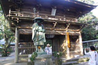 国道55号をひた走り、昼食もコンビニおにぎりですます。途中、岩崎弥太郎の生家がある安芸市を抜け海岸線に出た。右手に太平洋を見ながら室戸市にやってきた。途中3つのお寺により御朱印をもらう。それにしても、どのお寺も山頂にある。私は車で登ったのだが、お遍路の大変さをしみじみ感じる。坂道を登り室戸灯台に行ってみた。眼下に太平洋を見下ろしすばらしい眺め。坂本龍馬の同志である中岡慎太郎像が建立する所が室戸岬。ここまで90km、2時間半の道のり。少々散策し、一路徳島に向け出発。