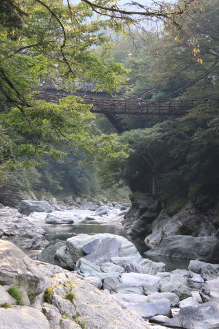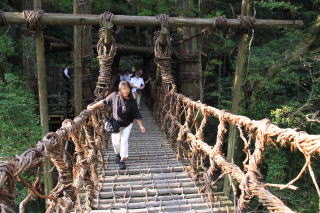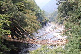 国道32号線の山道をひたすら走り、山を越え渓谷沿いを走ること1時間半。約60kmの道のりにて秘境のホテル(祖谷渓温泉ホテル 秘境の湯)にたどり着く。ここは、平家の落武者の村と言われており、本当に秘境だ。冬になると雪も積り、閉ざされた世界となるようだ。観光ポイントの1つ、高さ200mの絶壁に立つ小便小僧を見た。山道を走っていると、当然ガードレールの横に立っている。路上に車を止め、絶壁から下の渓谷を望み、高さを感じる。小便小僧から放尿があるとすごいなと思ったが、そこまではこっていなかった。そこからもう1つの観光ポイントのかずら橋を見学する。生息しているシラクナカズという木のつるを編んで作られた橋だそうだ。長さ約45mとのこと、大自然の中にある吊り橋、美しい。何故、つるかというと、落武者平家への追ってが現れたとき、こちら側にかさせないためにつるを切り橋を切断するためとのこと。なお、つるは数年に1度、編み直すとのこと。近くの滝は、平家落武者が都をしのび琵琶を弾いた所とのこと。ホテルにもどり、露天風呂にて暮れいく空を見るのは最高だ。ホテルの食事もおいしく、川魚や山菜そして日本酒を堪能した。なんか、前日までの慌ただしさとはうって変わり、なんかもの思いにふけってしまいそうな、神秘な場所である。今日のドライブ、80km。