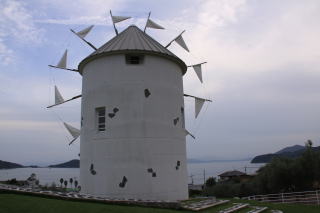 ここから瀬戸内海の島めぐりであり、高松港から小豆島に渡る。小豆島の土庄港(とのしょう)へはフェリーと高速艇が出ている。フェリーを選び、初めて瀬戸内海に立つ。あいにく天気は曇り空だが、瀬戸内の島々を眺め1時間で到着。海から見る島の外形は想像以上に大きい。ホテルのお迎えマイクロバスにて小豆島国際ホテルに到着。「瀬戸内国際芸術際2016」が開催中のため、有名な美術館は大混雑であり入場制限をしており、事前予約が必要とのこと。明日、お目当ての美術館をあわててネット予約することにしたが、手続きに手間取り1時間ほどかかってしまった。小豆島の観光は今日半日しかなく、1時間のロスもあり、あわててオリーブ公園に行くことにした。タクシーは捕まえにくく、移動は公共のバス。芸術祭のガイドブックを手にした若い人が目立った。アジア人が多いが、言葉が通じず困っている人も見かけ、インフラが整備されていない。海沿いをのどかに走りオリーブ色サインのバス停に到着。海を背に坂道を上り、白い風車を発見。オリーブの実をつけた木を初めて見た。オリーブの木々の中に、かわいいお店を発見。「魔女の宅急便」実写版のロケに使われたものとのこと。小高い丘から見るオリーブの木々、白い風車とその向こうに瀬戸内と絵になる風景だ。湾の向こう側に「二十四の瞳」のロケ地があるとのことだが、ここからは見えない。魔女の宅急便にちなんで魔女のほうきの貸し出しがあり、記念撮影に興じる。ホテルに戻り、瀬戸内ビールとともに海の幸を堪能した。ホテルの裏手は、観光ポイントのエンジェルロード(天使の散歩道)だ。干潮時になると浜があらわれ(1日2回)、海向こうの小島に渡れる。なんでも、「大切な人と手をつないで渡ると願いが叶う」とか。小島入り口にはたくさんの絵馬があった。夜はホテルからサーチライトが照らされ、幻想的な世界が広がる。