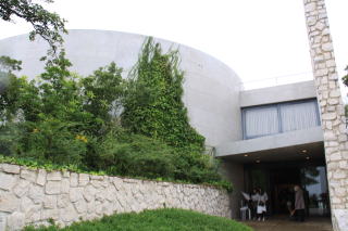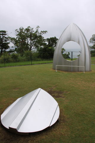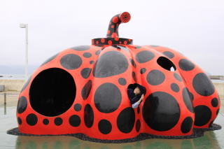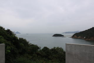 小型高速艇で直島に渡る。ベネッセ・コーポレーションが芸術の島とした開拓したこともあり、豊島の港と比較し、港にはオブジェクトもあり、にぎやかである。昼食にうどんを食べ、お目当ての地中美術館へ公共バスで向かう。雨が大分降ってきて、折角の瀬戸内の景色に靄がかかっている。安藤忠雄さんが設計した美術館であり、自然美を壊さず地中に建設され、地中にホテル(高級)も併設されている。お金持ちそうな外国人が散歩していました。今日の入場券は売りけれとのことであり、事前購入しておいて良かった。2,060円と高めだが、必見の価値あり。モネの絵画や巨大なオブジェなど空間を贅沢に使い、安藤忠雄さんの特徴の打ち放しコンクリートの壁と調和し、壮大なアートを堪能しました。中には海が見えるカフェがあり、180度広がる瀬戸内海をコーヒー飲みながら眺めた。贅沢な時間です。青い空・青い海を思い描いてきたため、天気が良くなかったのが本当に残念だ。